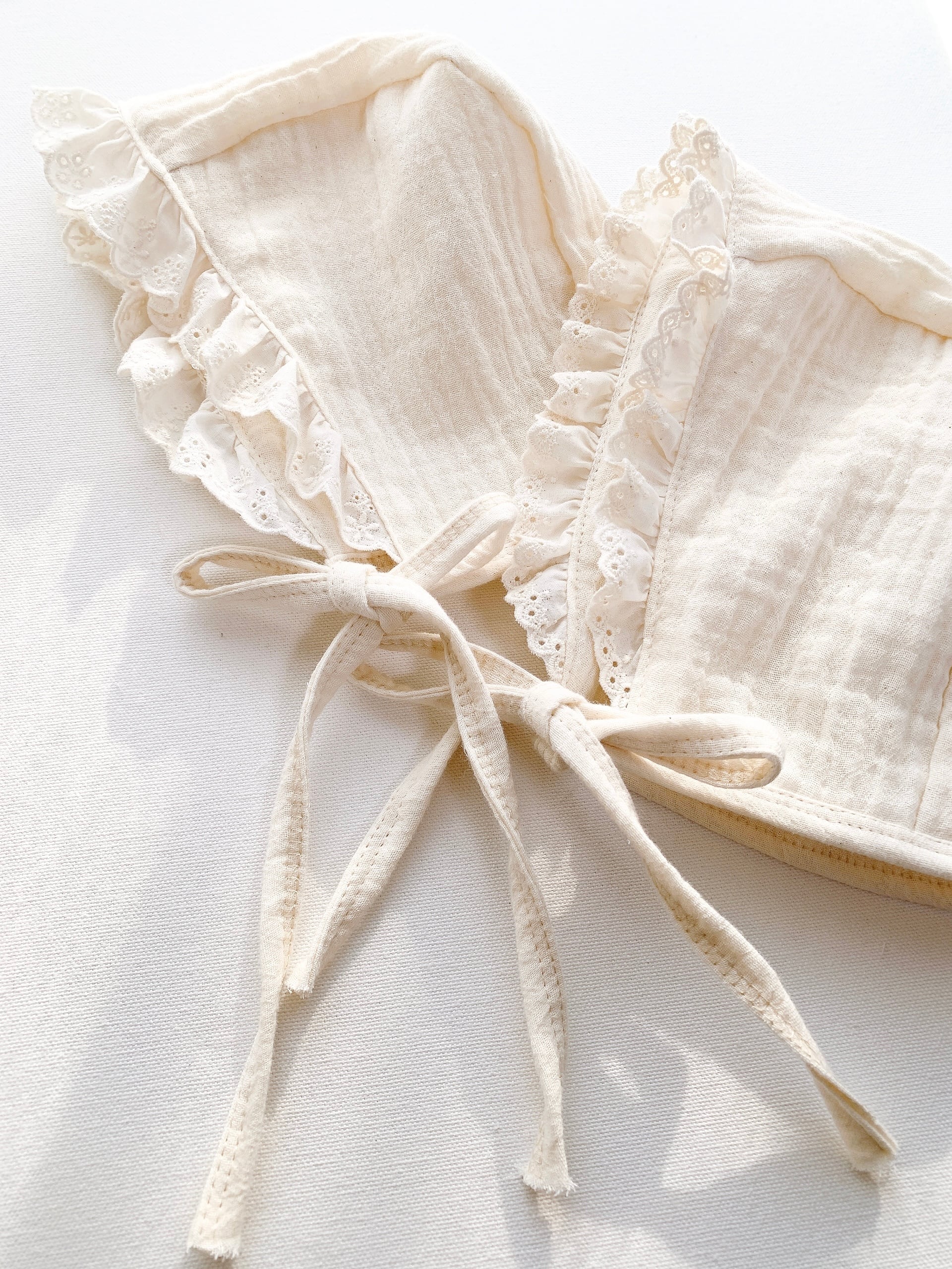 通気性の良いコットン100%ガーゼ生地のボンネット♡2種類のコットンレースからご選択頂けます♡