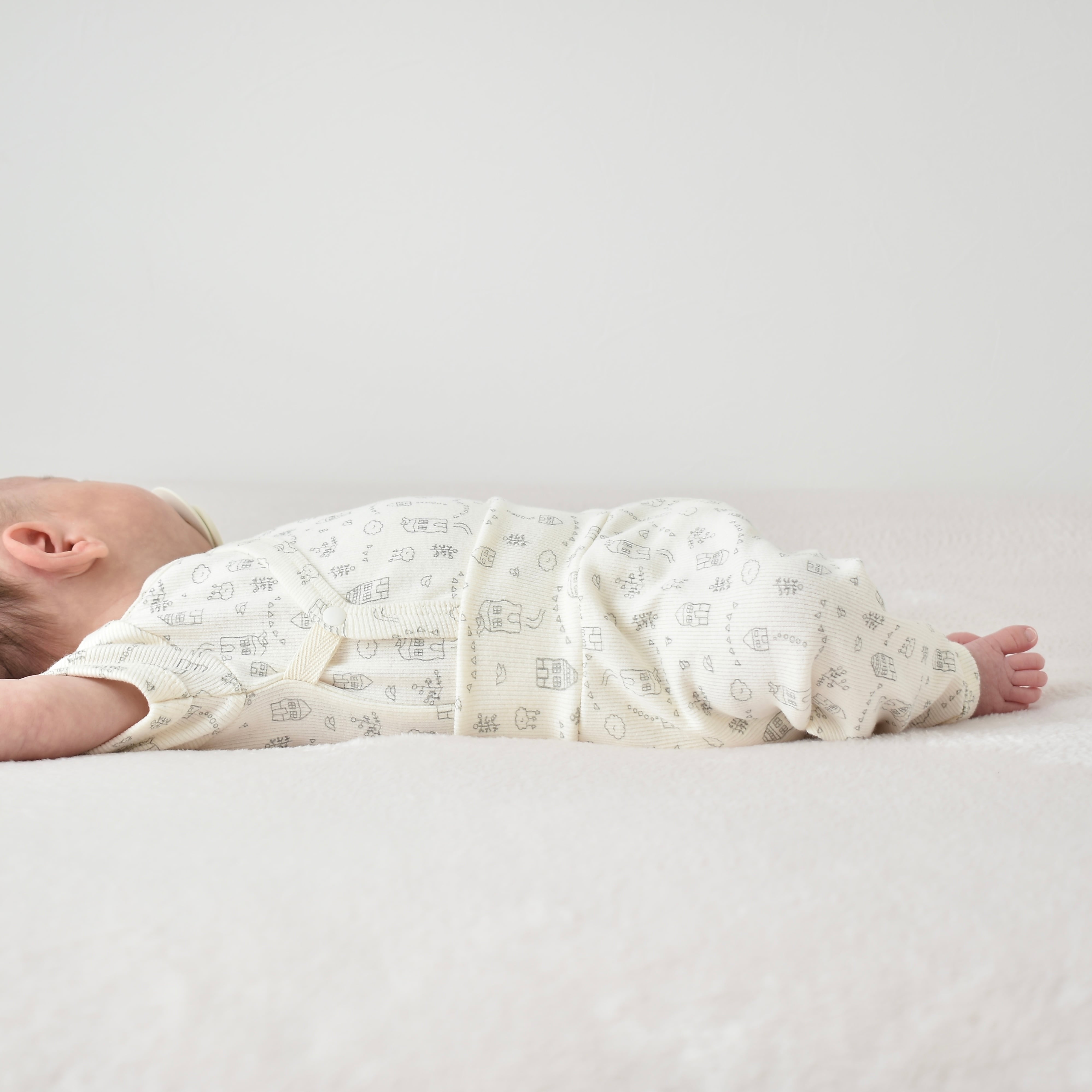 裁断の際に使用したチャコペンシルの印が残っている場合がございますが、数日で自然消失、お洗濯で消失するものになります。