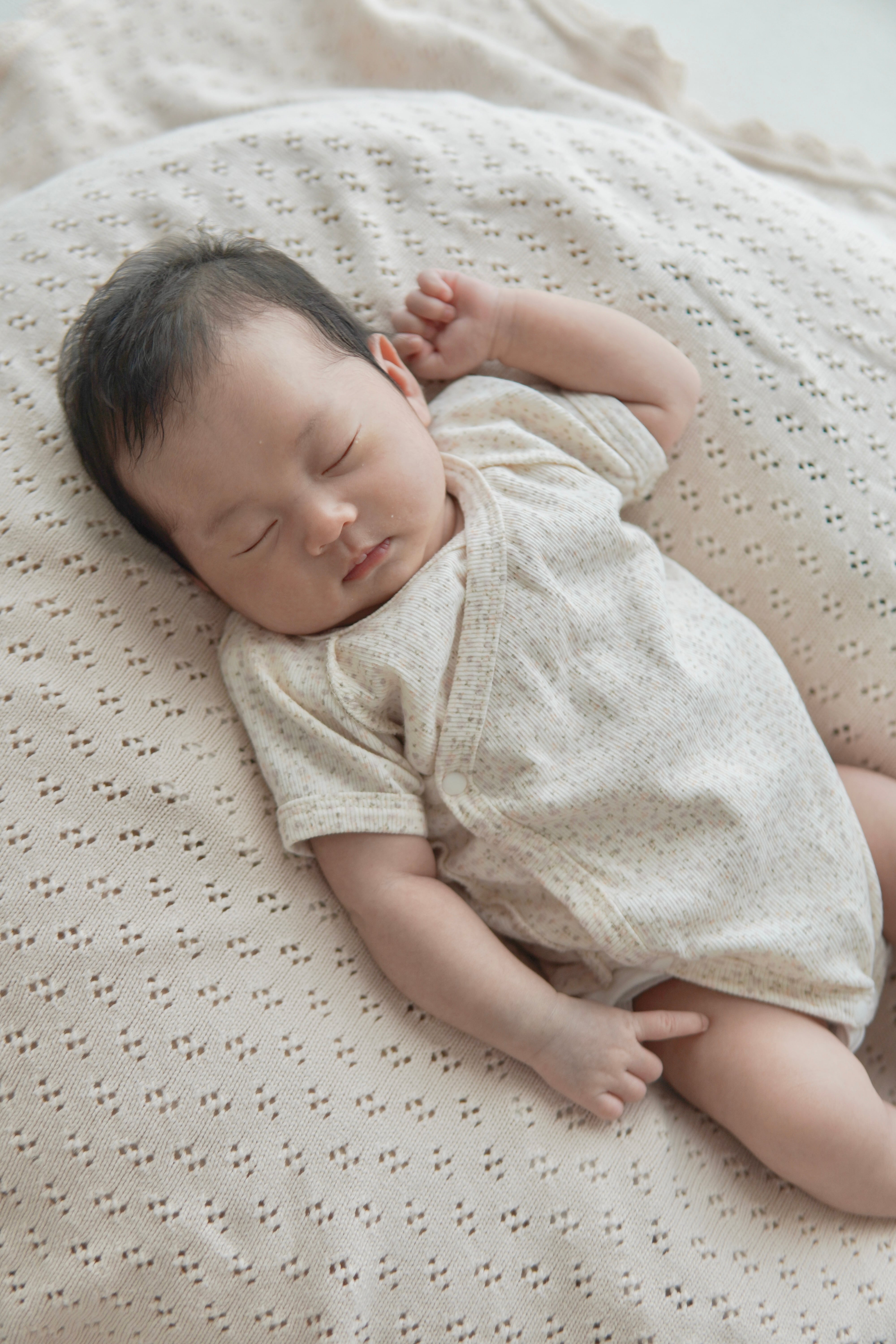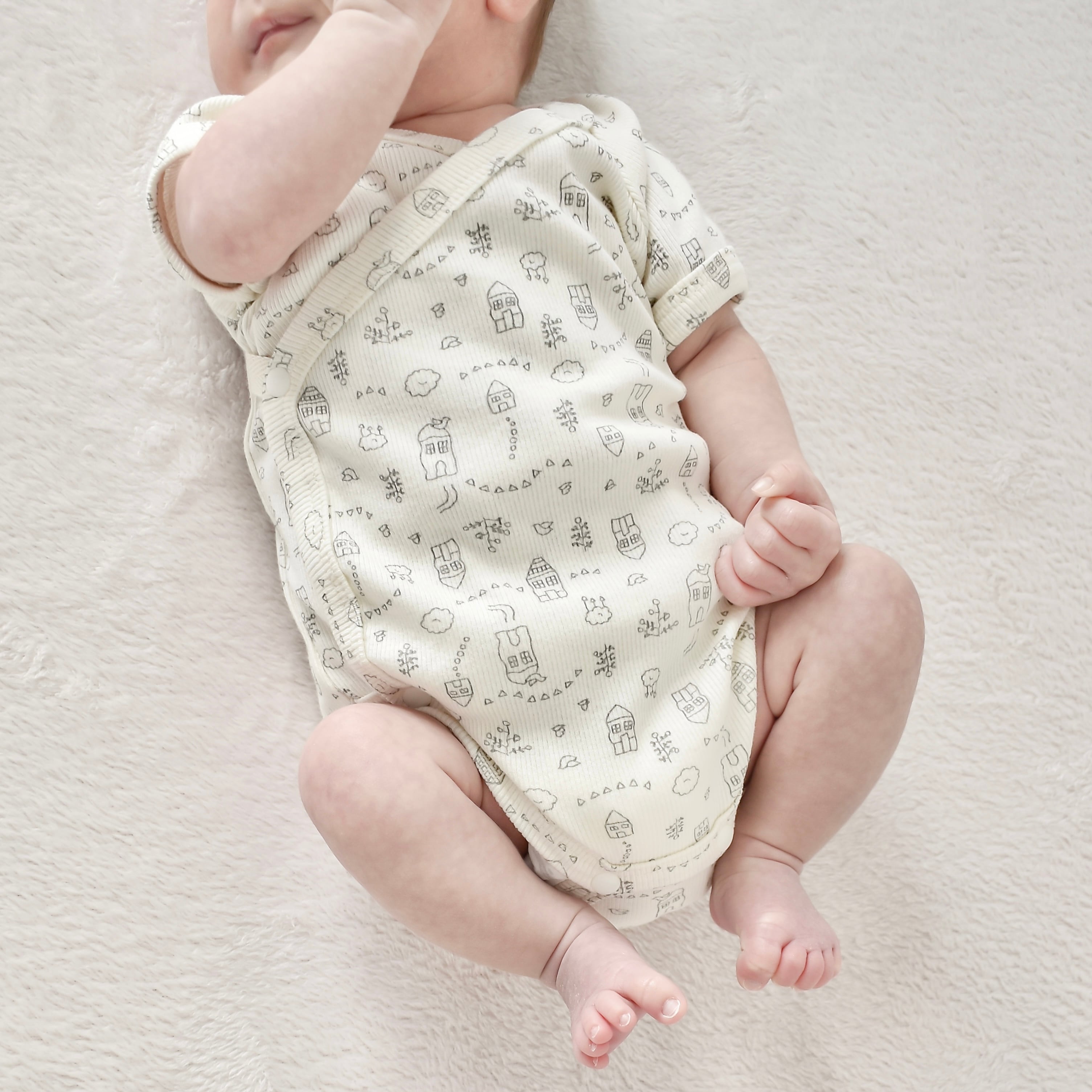 伸縮性が高い生地のため着脱も楽々&赤ちゃんも動きやすいお洋服です♪