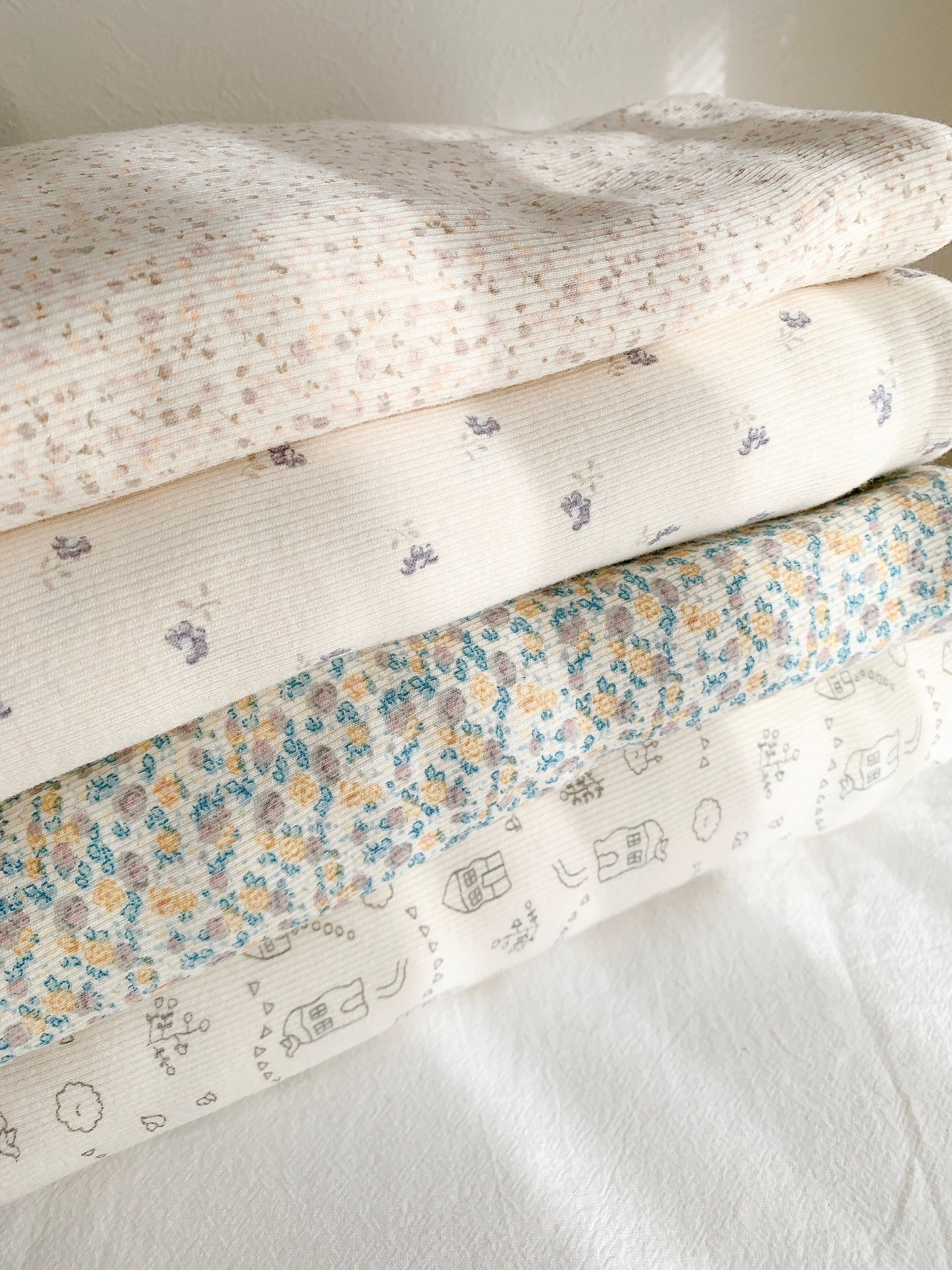 主にニット生地を取り扱っております。生地は水通しを行ってから製作しておりますが、乾燥機を使用すると縮む恐れがございますのでご使用はお控え下さい。また洗濯の際は洗濯ネットに入れ、おしゃれ着洗いコースをおすすめ致します。