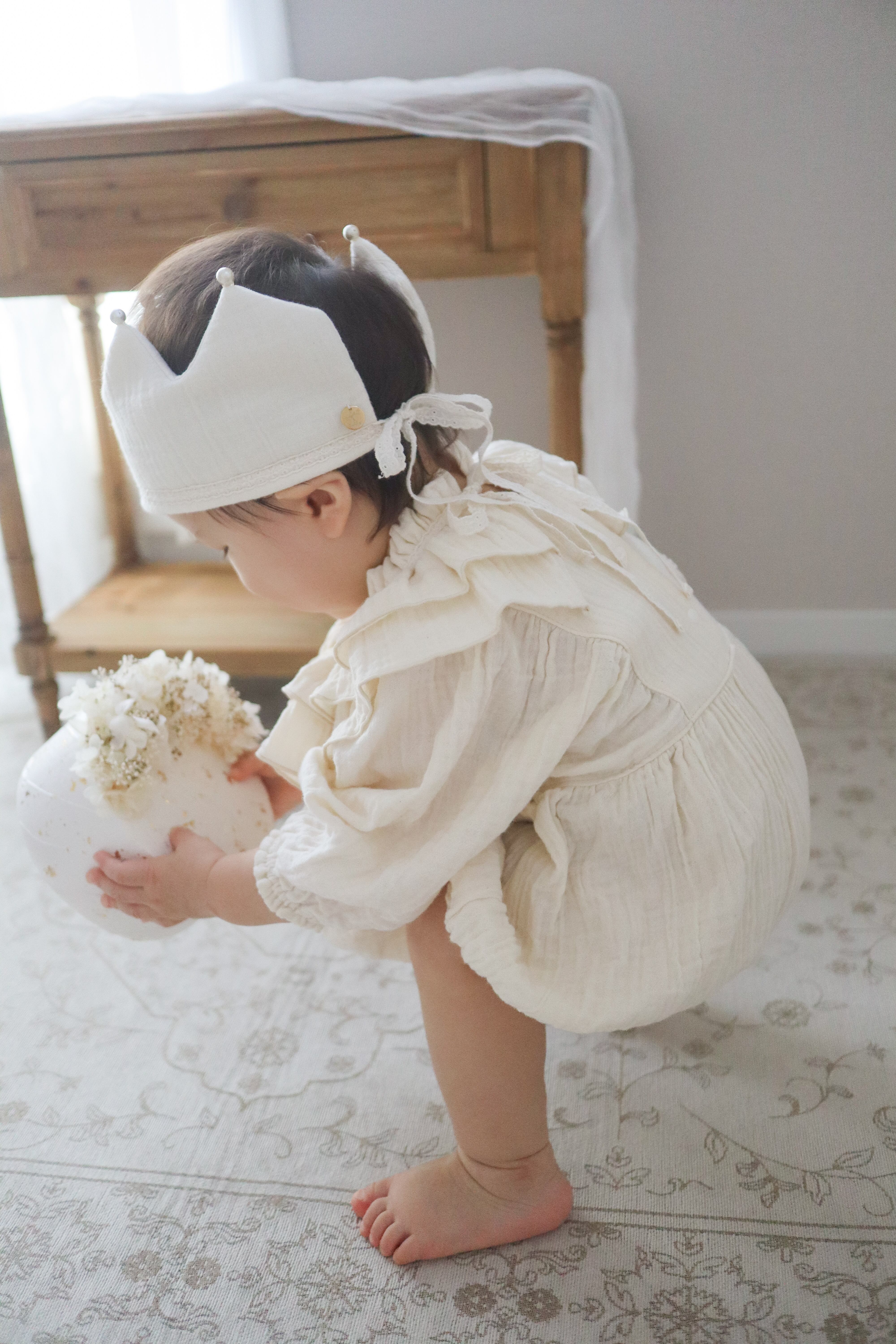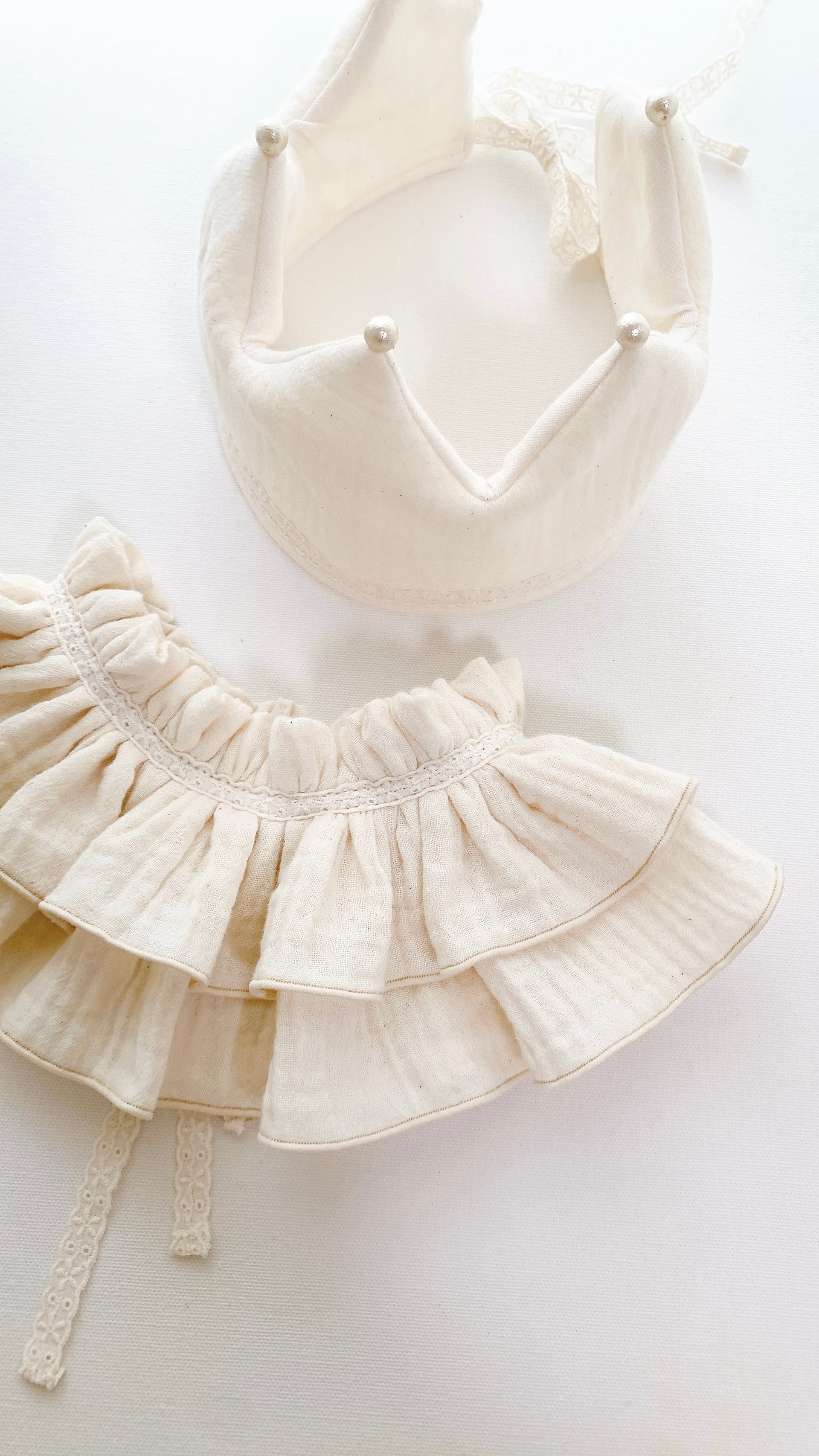 装飾のコットンパールは接着剤で装着しております。お取扱いには十分に注意していただき、ご使用中はお子様から目を離さず、誤飲にご注意下さいませ。