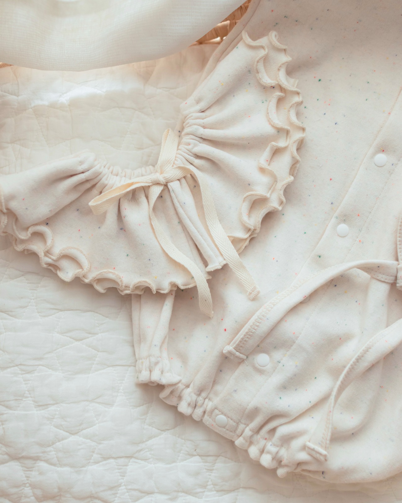 ロングセラーのconfetti セレモニードレスがアップデート致しました!カラフルなつぶつぶネップが可愛いコンフェッティ生地♡ぽわんとしたシルエットの2wayドレスでユニセックスなデザインです。