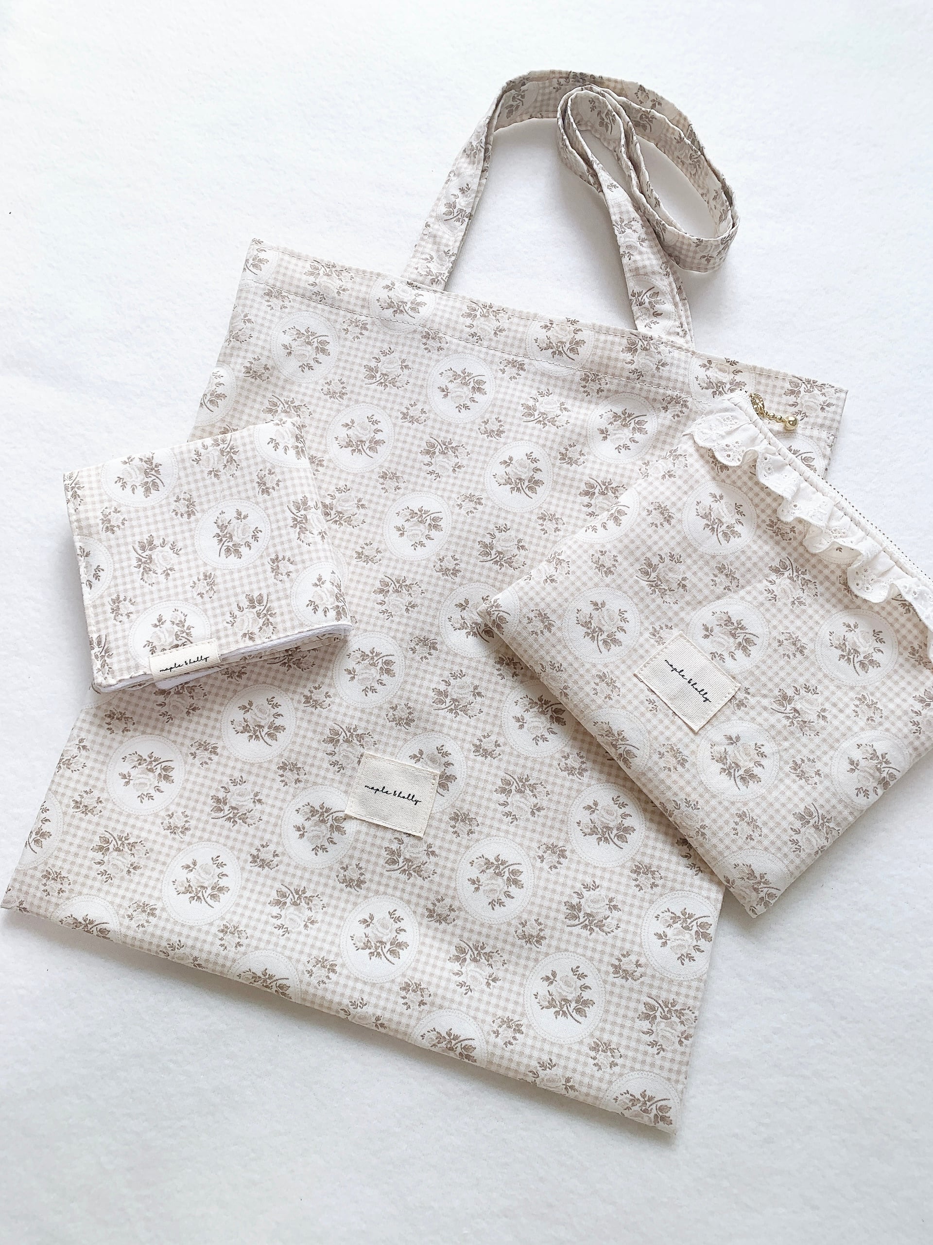 【新春初売り限定】antique flower A4トートバッグ・フラットポーチ・ハンカチ3点セット
