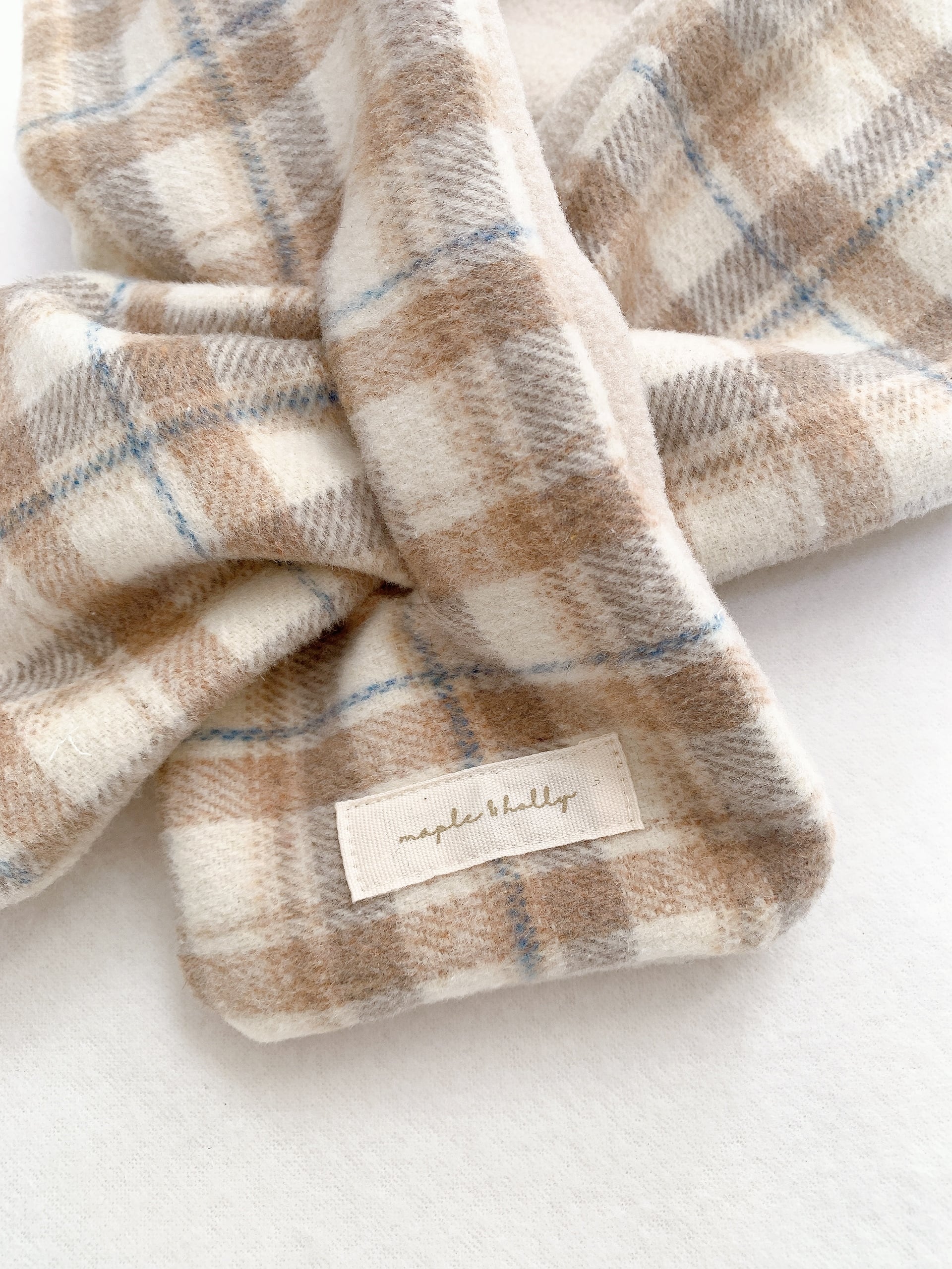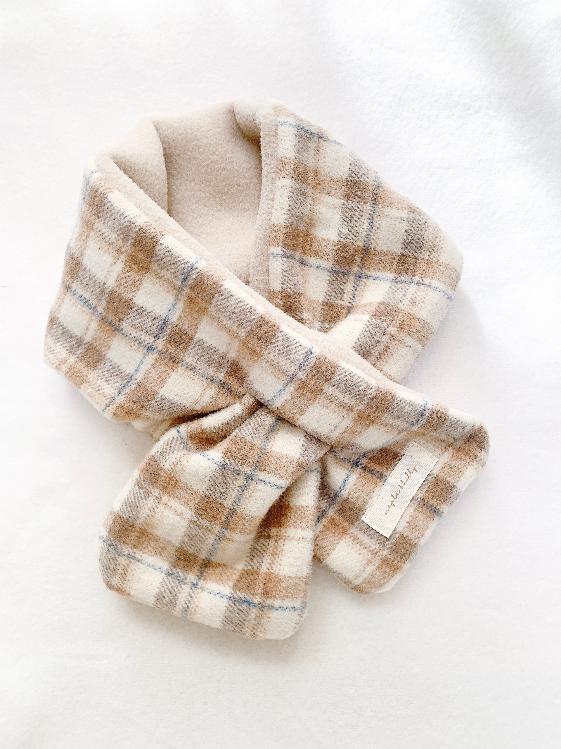 ユニセックスでご着用頂けるベビー〜5歳頃目安の小さめキッズマフラーです♡ 穴にサッと通すだけで簡単に着用頂けます♪