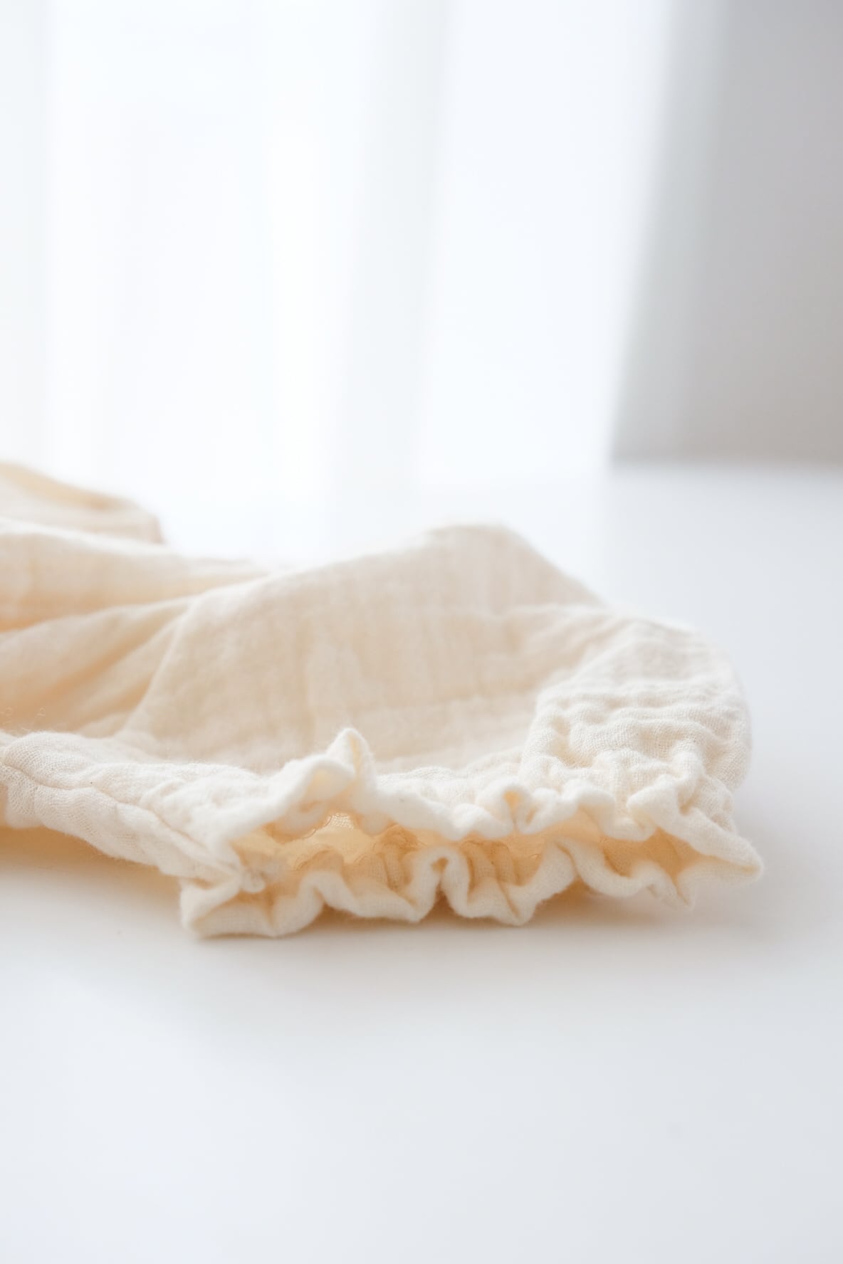 ※こちらの商品は生成り生地を使用しています。無染色のため綿カス残りがございます。生成り生地の特徴で自然の風合いとなりますので汚れではございません。お洗濯でだんだん目立たなくなってまいりますが、このままの風合いを長くお楽しみされたい方は蛍光剤、漂白剤不使用の洗剤を使用し、手洗いを推奨致します。また、入荷時期により若干の色味の変化がございます。