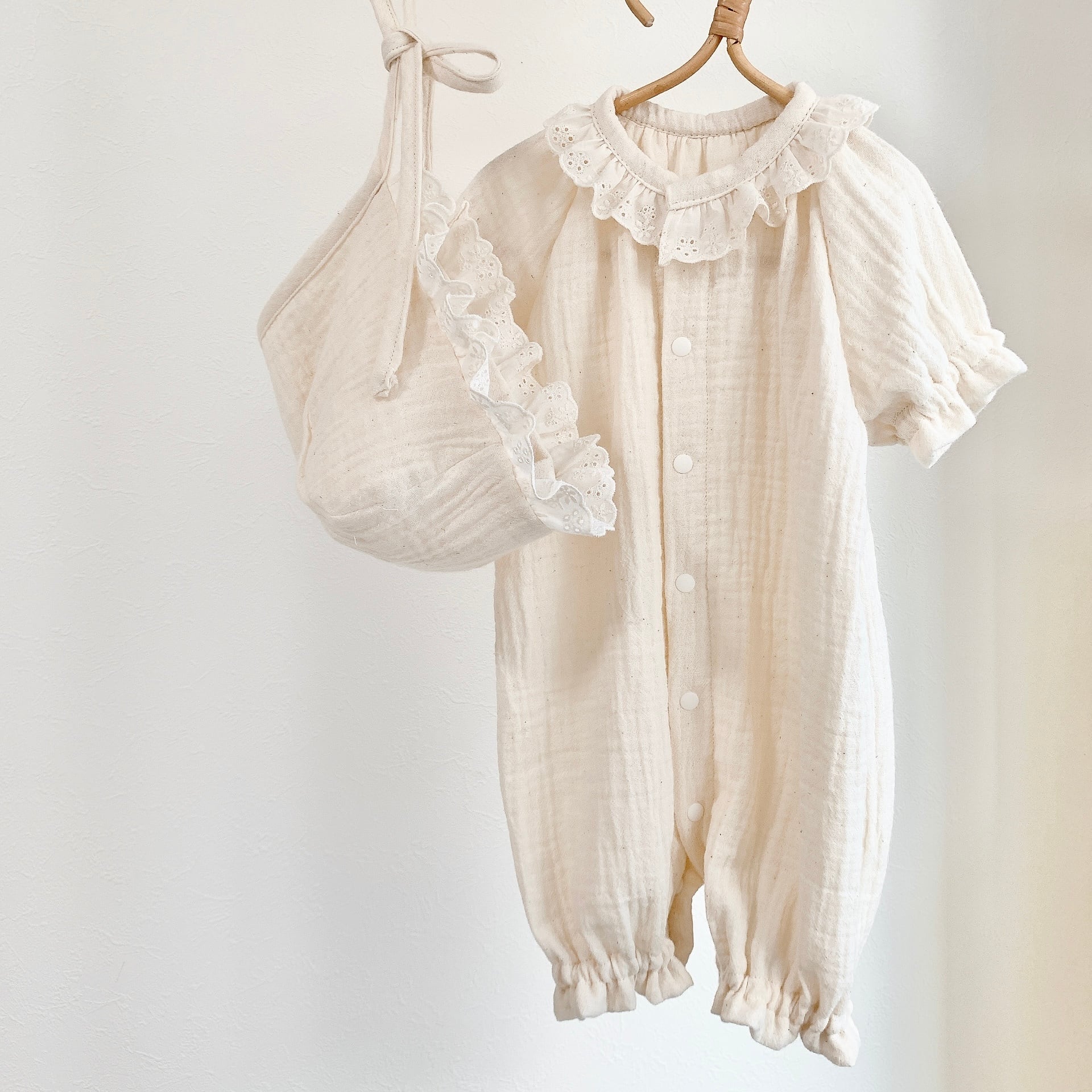 【予約】noa days ナチュラルガーゼセレモニードレス・退院着 (半袖・長袖対応可) 日本製ガーゼ素材・コットン100%